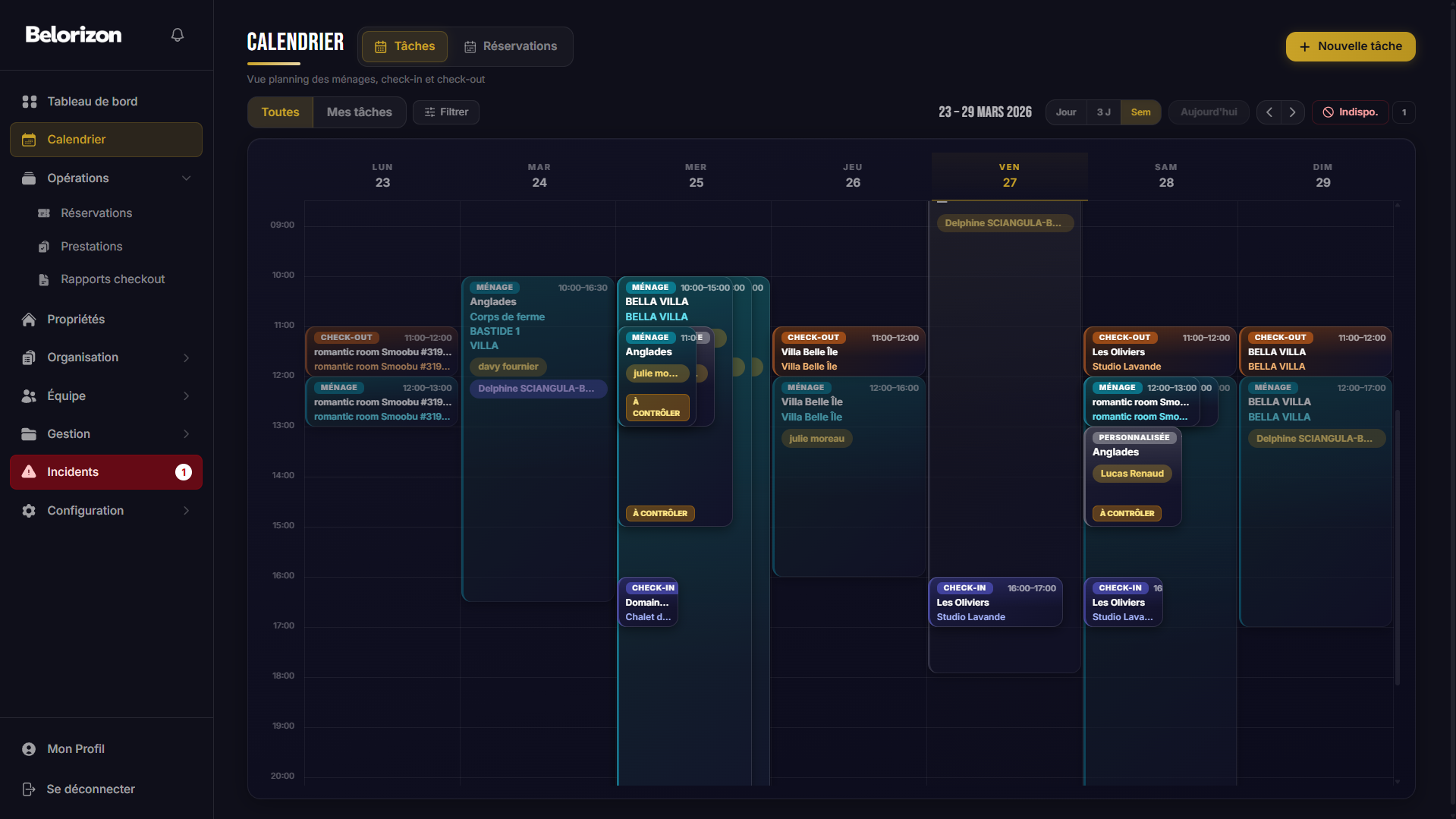 Ménage, check-in, check-out, blanchisserie — tout est tracé et assigné.